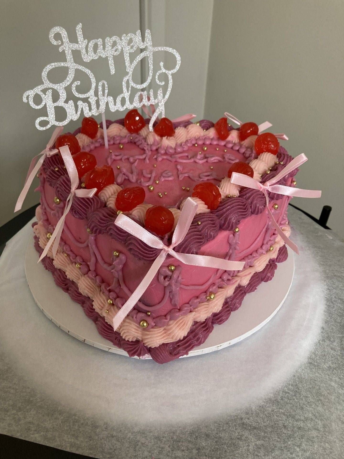 Chocolate and Vanilla marble layer cake, Chocolate ganache filling, Cream cheese Buttercream, 3 layers, 8", topped with cherries