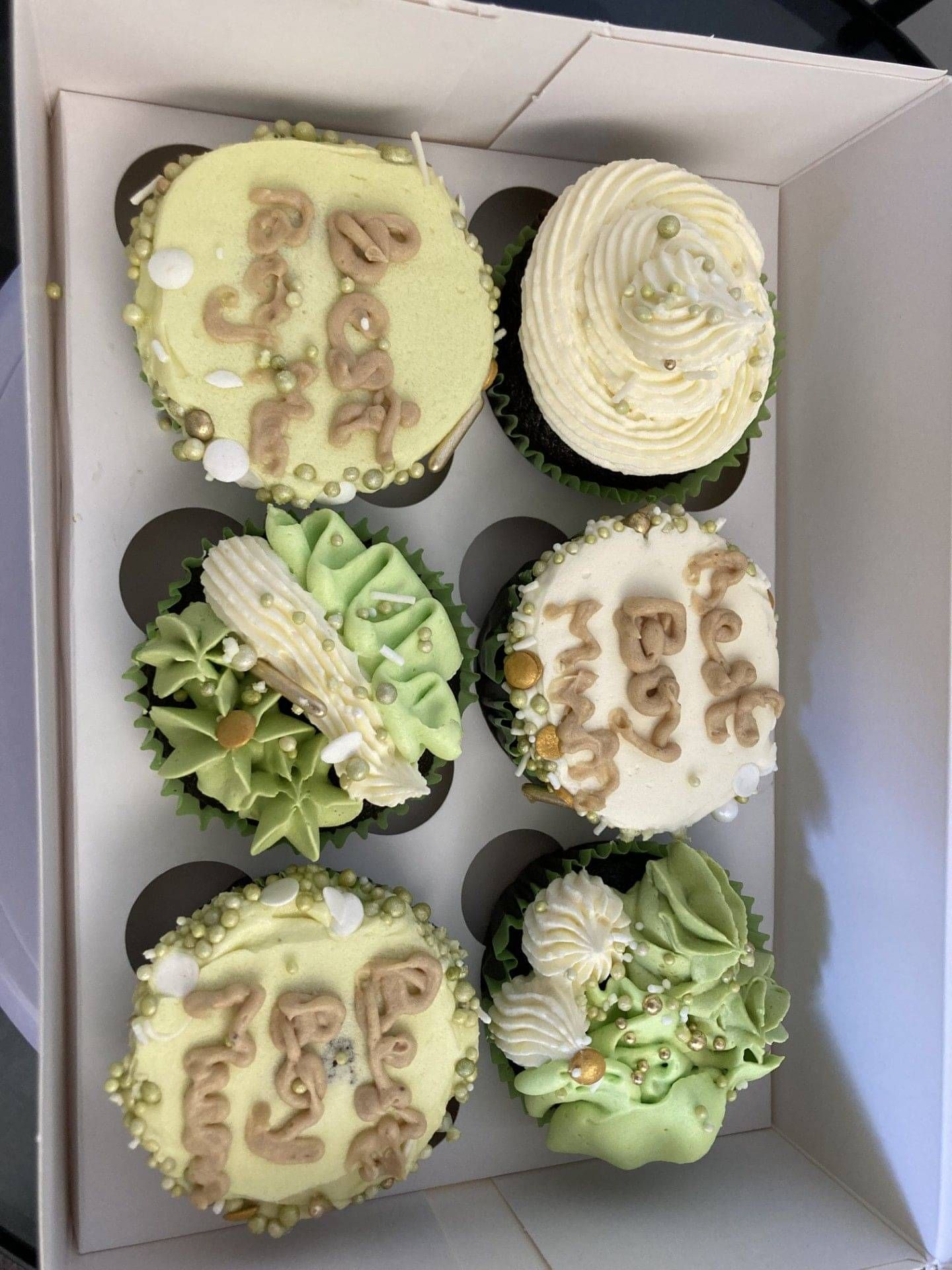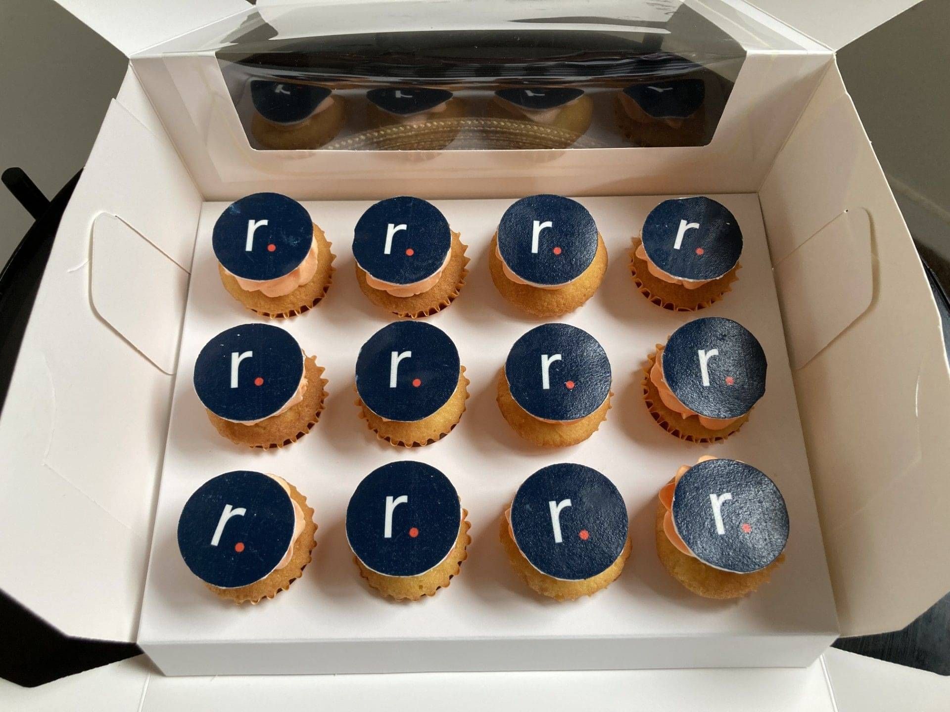 Vanilla cupcakes, Vanilla Buttercream, logo on top